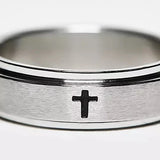 Lost Souls - Spinning Band Ring With Engraved Cross In Platinum Stainless Steel